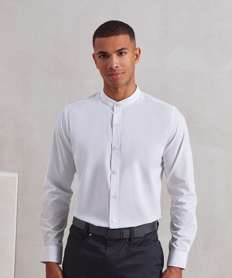 Banded collar grandad long sleeve shirt