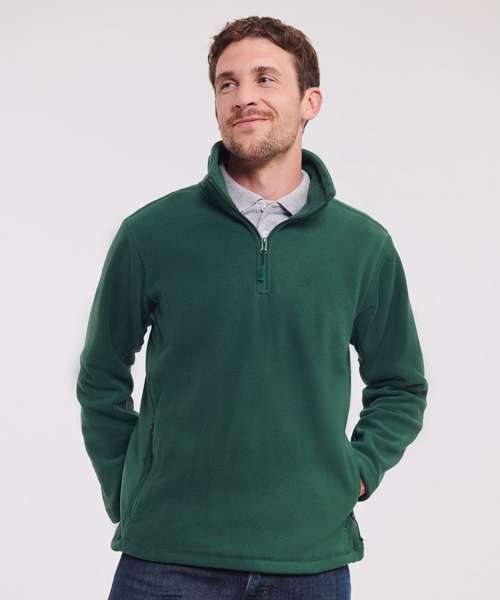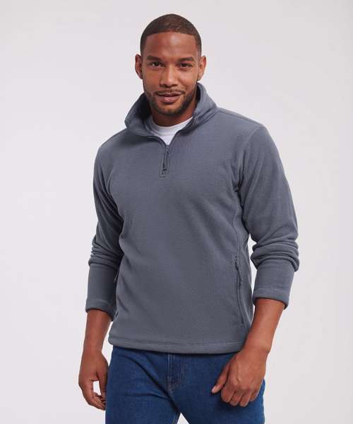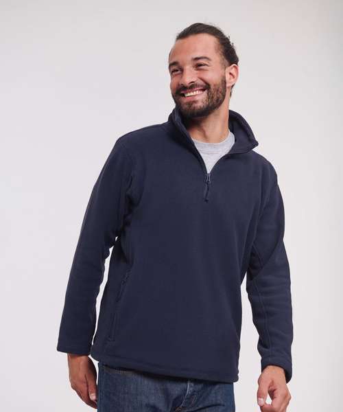 The compact fleece material, the smooth surface and the panelled construction allow for excellent fit and a more modern look than fleeces generally do. Cadet collar. 1/4 zip. Side pockets with reversed zips and inner mesh lining. Cord pulls on all zips. Bungee cord in hem.
