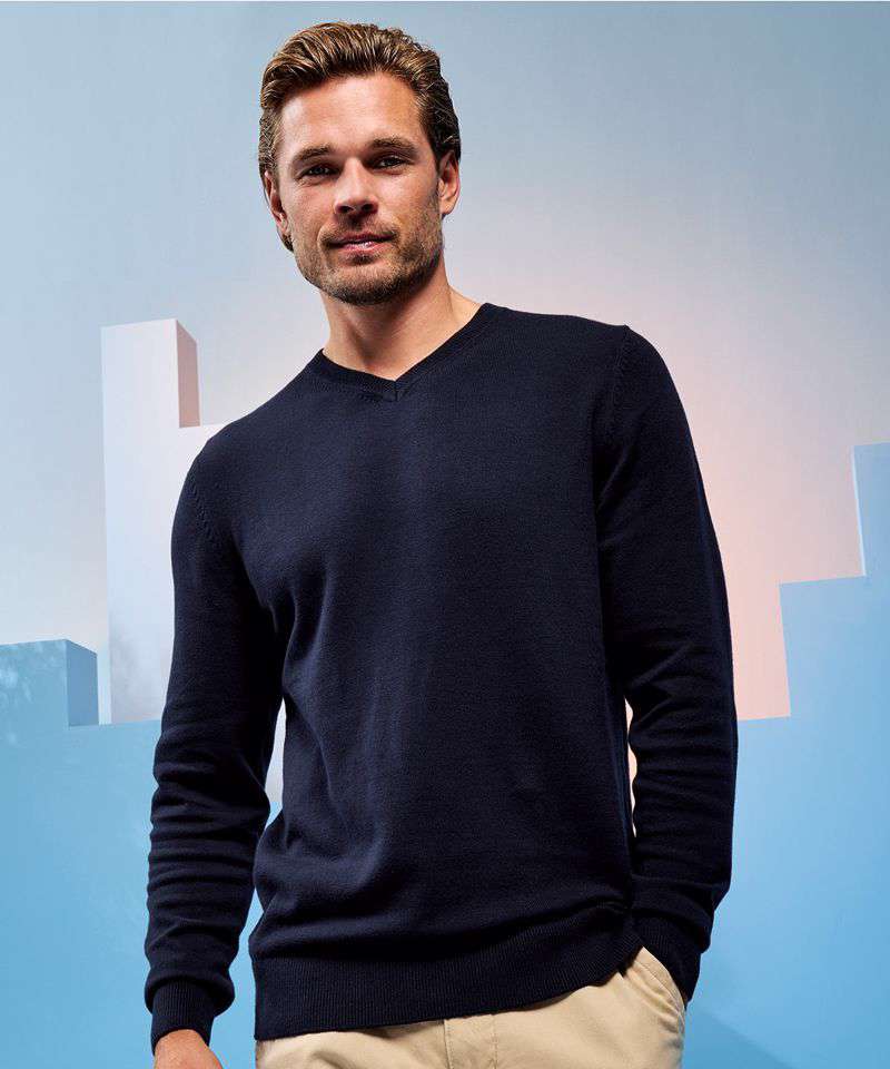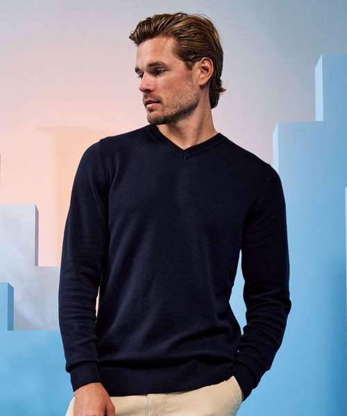 AQ042: Men's cotton blend v-neck sweater