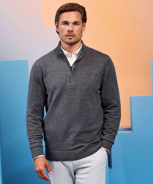 AQ048: Men's cotton blend ¼ zip sweater