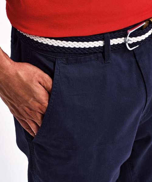 Classic fit. 98% cotton, 2% elastane. Side pockets. Small coin pocket. Welt back pockets with button closures. Belt loops. Zip fly with an extended buttoned closure.