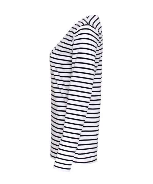 A classic wardrobe favourite, the women's marinière coastal tee features a clean wide neckline, long sleeves and feminine fit making it an easy, versatile piece you'll come back to again and again.