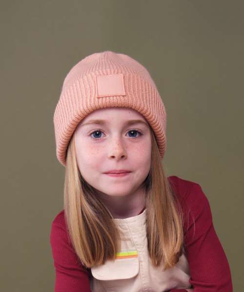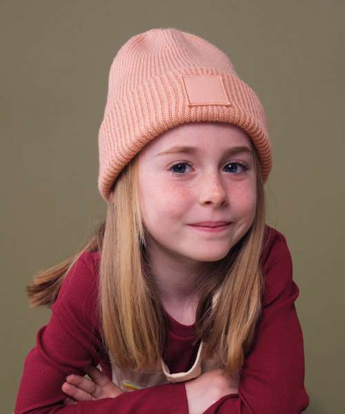 B336B: Kids deep cuffed tonal patch beanie