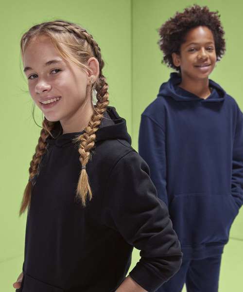 Engineered for boys and girls (unisex), from kids to teens. Side-seamed. Classic, modern, relaxed fit for all occasions. 100% cotton face with excellent printability and soft hand feel. Expertly designed single Jersey lined hood for a flawless fit. No drawcord, for added safety. Kangaroo pocket thoughtfully crafted for comfortable hand placement. Classic cuffs and bottom hem in 1x1 rib with elastane. A wide range of classic and contemporary colours to cover any need – from promotionalwear to teams, schools and activewear. ‘B&C No Label’ solution for easy rebranding. Contains recycled polyester.