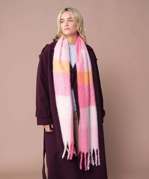 Wrap up warm in the Fluffy check scarf – an oversized winter accessory crafted from 100% certified recycled polyester. This recycled scarf combines a soft-touch feel with all-day comfort, while its classic checked pattern adds timeless style. Chunky proportions and tassel edging bring texture and visual appeal to a conscious, versatile choice for cold-weather layering.