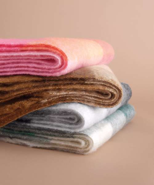 Contains 100% certified, recycled polyester. Luxury soft-touch fabric. Checkered design. Chunky, wrap-around design. Oversized style. Tassel trim. TearAway adhesive fabric label.
