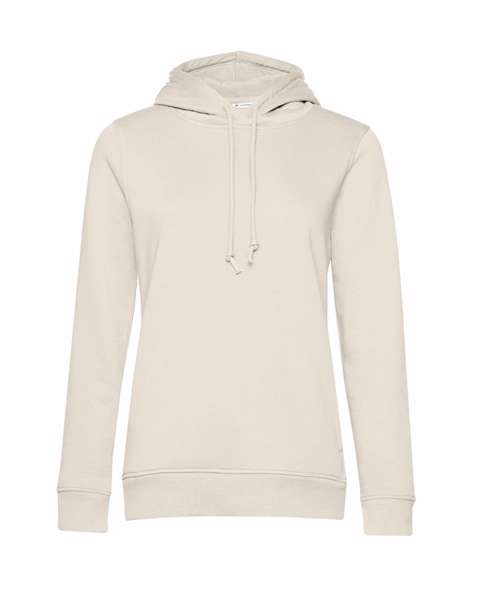 Trendy organic hooded sweatshirt with retail fashion oriented look and feel. Strong styling with great fitting and perfect length. Pockets placed in side seams to allow maximum front decoration surface area. Side seams ensure the best fit and a feminine silhouette. Identical colours (20) for men and women for a perfect duo. Visible "Hi! I'm Organic" neck tab to highlight the organic value of the garment. Easy branding solution - B&C No label solution. Inside single Jersey halfmoon in back to allow easy branding personalisation. Retail like features: single Jersey lined hood, qualitative herringbone neck tape and fashionable drawcord.