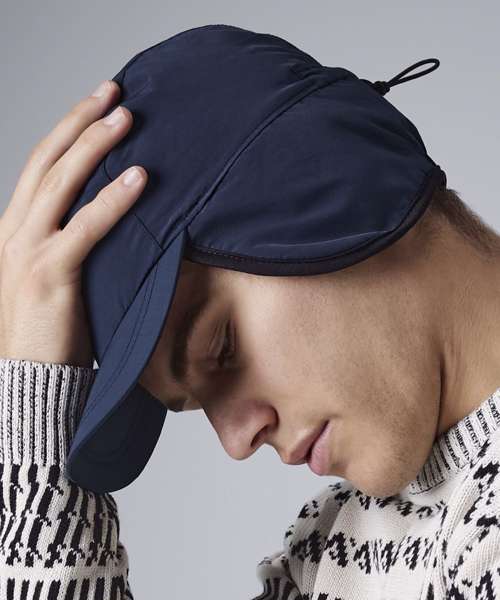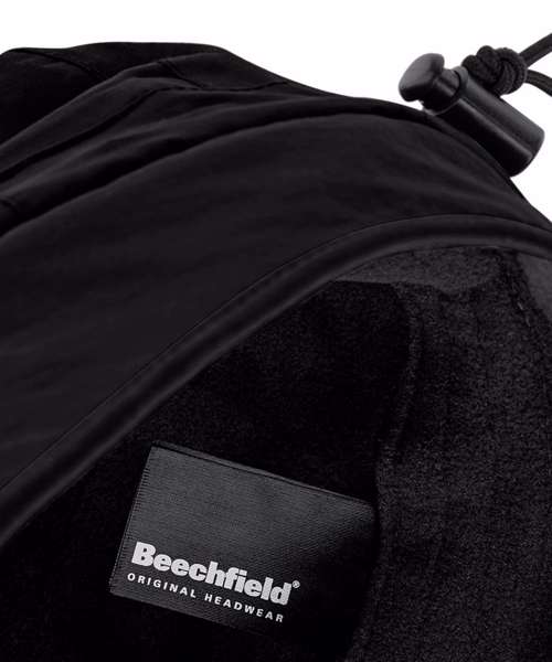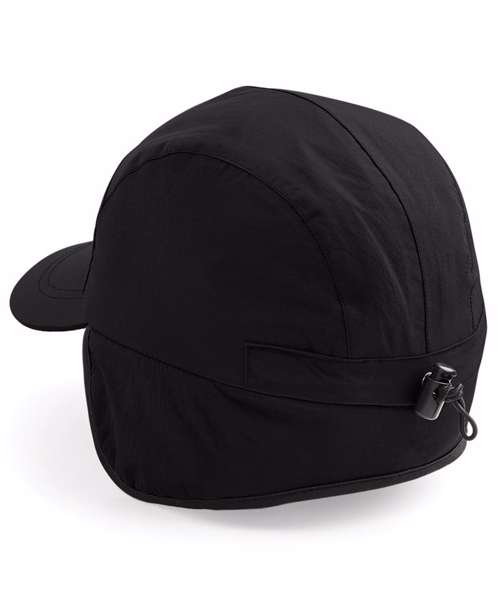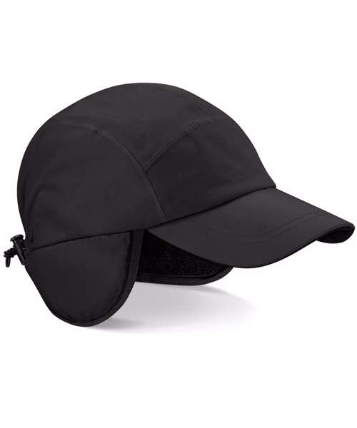 Waterproof and breathable fabric. Taped seams. Elasticated size adjuster. Optional fold-down ear flaps.