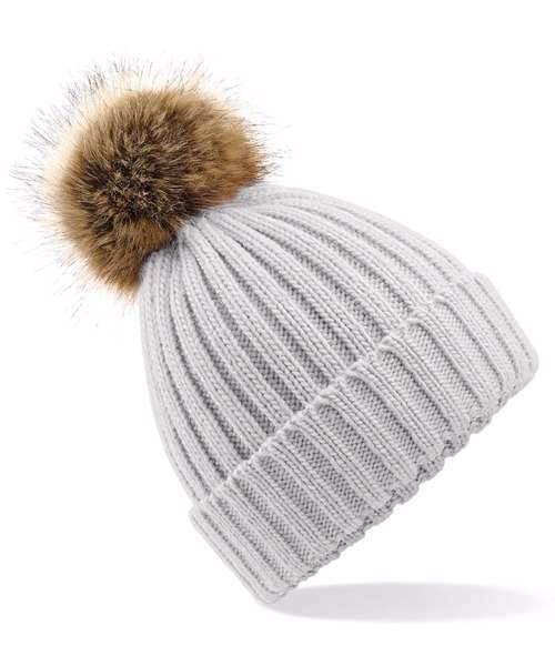 BC412: Fur pop pom chunky beanie