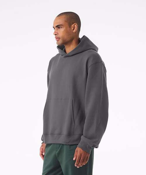 Side-seamed. Double-lined hood. No drawcord. Kangaroo pocket.