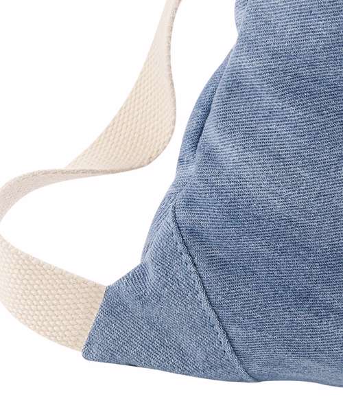The denim gymsac offers a relaxed aesthetic and can be carried by hand or over the shoulder. With a focus on soft textures and ample space for surface decoration, this denim, drawstring bag adds instant cool to any casual accessories collection.