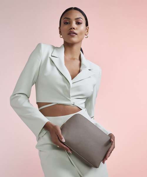TearAway label for ease of rebranding. Saffiano fine grain. Zippered main compartment. Soft-touch lining. Multi-purpose use.