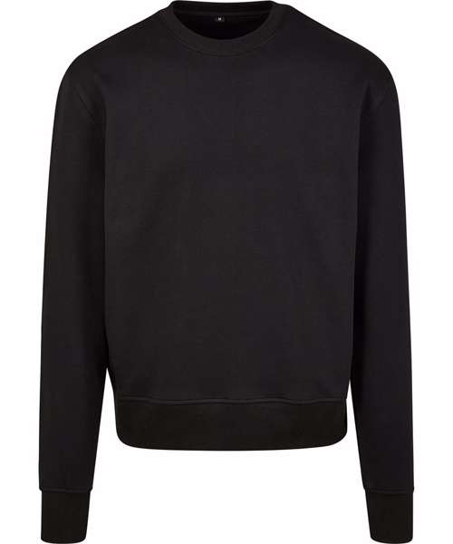 The oversize cut crew neck sweatshirt convinces with its high cotton content. Wide ribbed cuffs at the hem and sleeves round off the look. The crew is made for finishing by screen printing and flex printing. This item is manufactured in a FAMA Certified factory. FAMA stands for Facility and Merchandise Authorisation and is a high standard production certificate.