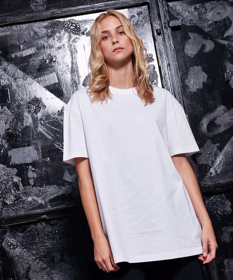 The oversized women's boyfriend tee is perfect modern piece to relax in. The t-shirt’s round neckline and 100% cotton fabric make it uber comfortable. This basic is the perfect choice for hot days and also for layering on colder ones thanks to its wide sleeves. The comfortable single Jersey can be customized with a print.