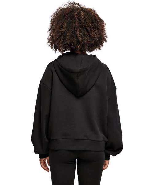 A women’s hoodie that stands for pure comfort and joy! The oversized cut, in 100% cotton fabric, ensures wearer comfort, while a playful flair is achieved through dropped shoulders and extra wide sleeves. Wide rib cuffs and hem, as well as a fluffy hood, round off a garment which can also be personalised with embroidery or printing.
