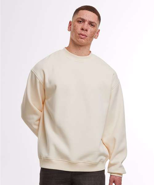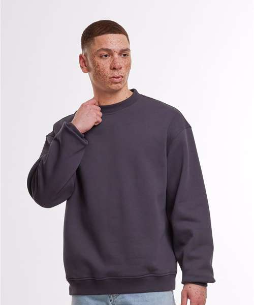 Oversized fit. Dropped shoulders. Ribbed cuffs and hem. Ribbed crew neck. Half-moon at the neck.