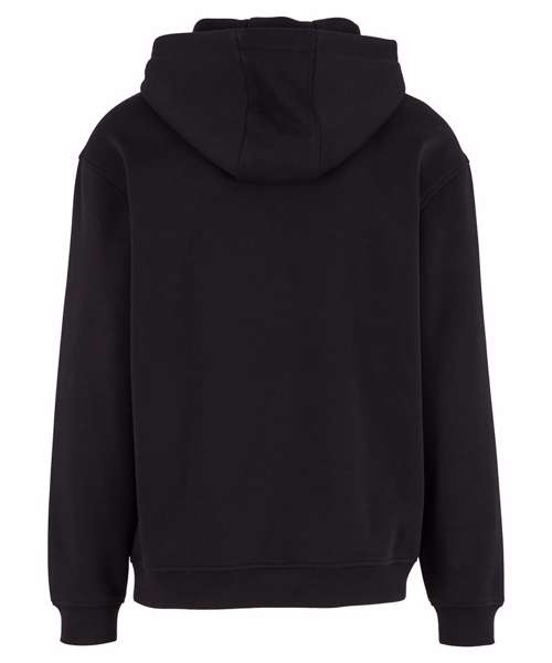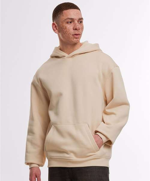 Loose fit. Dropped shoulders. Customisable kangaroo pocket. Hood. Ribbed cuffs and hem. Half-moon at the neck.