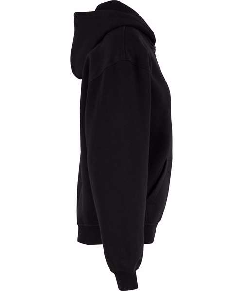Oversized fit. Full metal zip. Hood. Divisible, customisable kangaroo pocket. Ribbed cuffs and hem. Half-moon at the neck.
