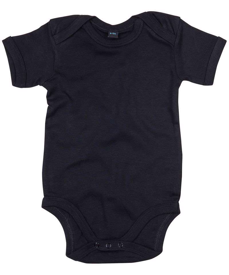 Super soft baby bodysuit with envelope style neckline, binding at edges for shape retention and nickel-free poppers at legs for ease of dressing