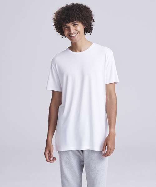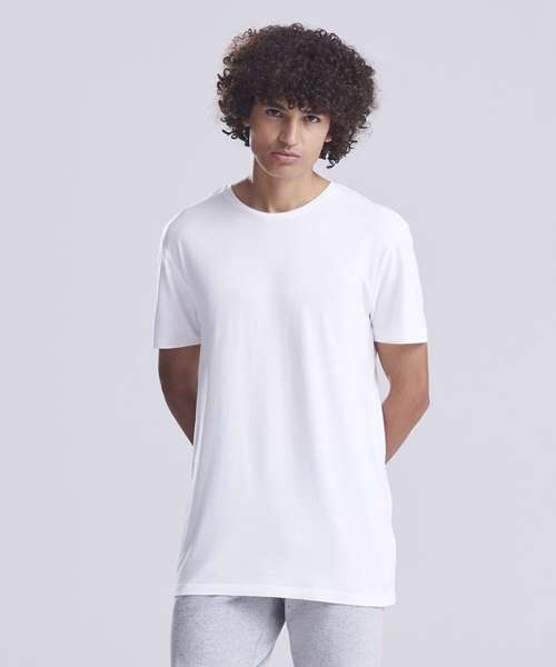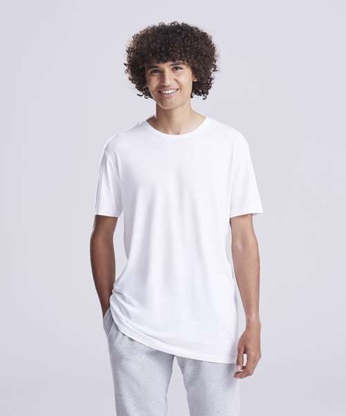 80% LENZING™ ECOVERO™, 20% organic cotton. Single Jersey. Ribbed collar. Taped neck. Side seams – non tubular body. Twin-needle detail at hem and sleeve. Set-in sleeves. Crew neck. Fashion fit. Size label only for easy rebranding.