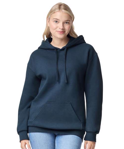 75% U.S. Cotton, 25% Polyester. 360gsm. 18/1 yarn count. Classic fit. Seamless Body. 2-ply self-fabric hood. Removable flat drawcord. Pouch pocket. Tear Away label.