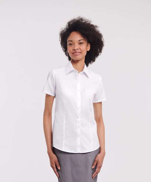 J963F: Women's short sleeve herringbone shirt