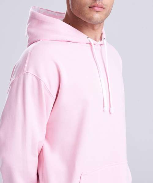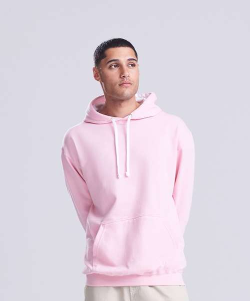 Twin needle stitching detailing, double fabric hood with contrast inner, contrast flat lace drawcords. Kangaroo pouch pocket. Ribbed cuff and hem. Soft cotton faced fabric creates ideal printing surface. Simple tear out label makes it perfect for rebranding. Brushed inner fabric.