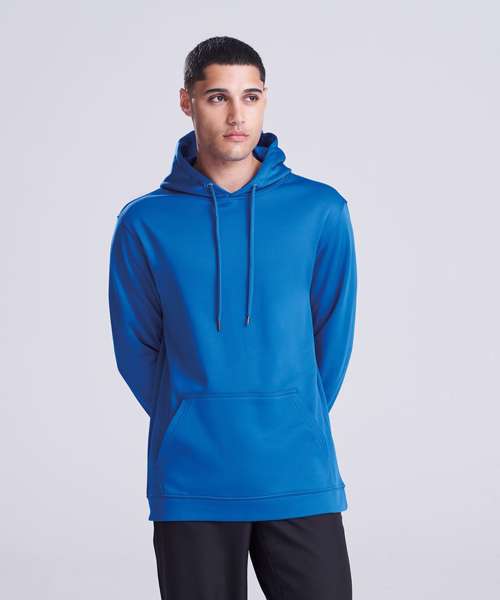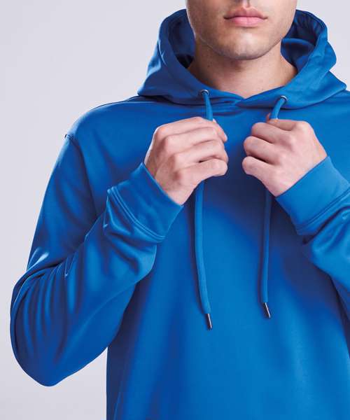 Sporty fit. Twin-needle stitching detail. Self-coloured round drawcords. Three-panel double fabric hood. Kangaroo pouch pocket. Simple tear out label makes it perfect for rebranding. Brushed inner fabric. Self-fabric cuffs and hem.