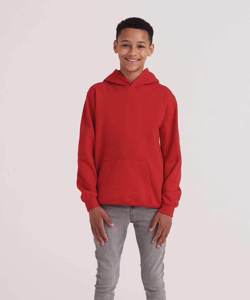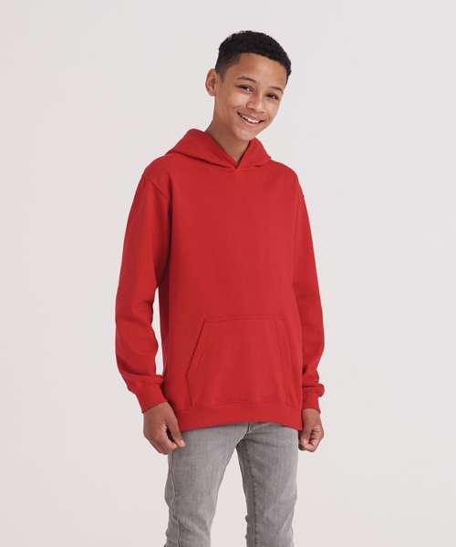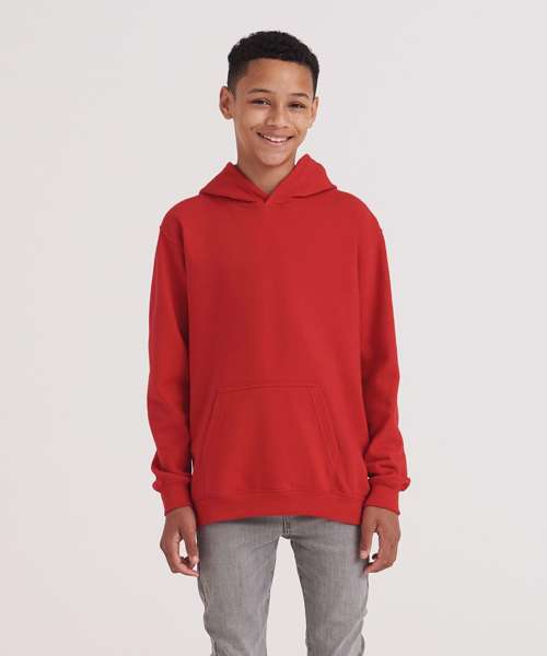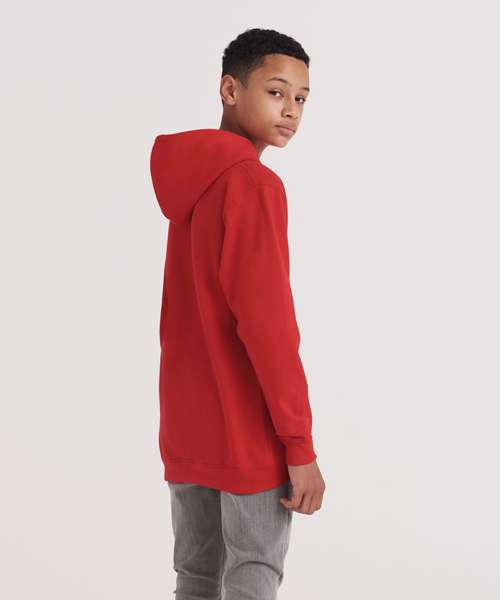 Twin-needle stitching detailing. Double fabric hood. Kangaroo pouch pocket. Ribbed cuffs and hem, no drawcords to comply with EU regulation. Soft cotton faced fabric creates ideal printing surface. Simple tear out label makes it perfect for rebranding. Brushed inner fleece.