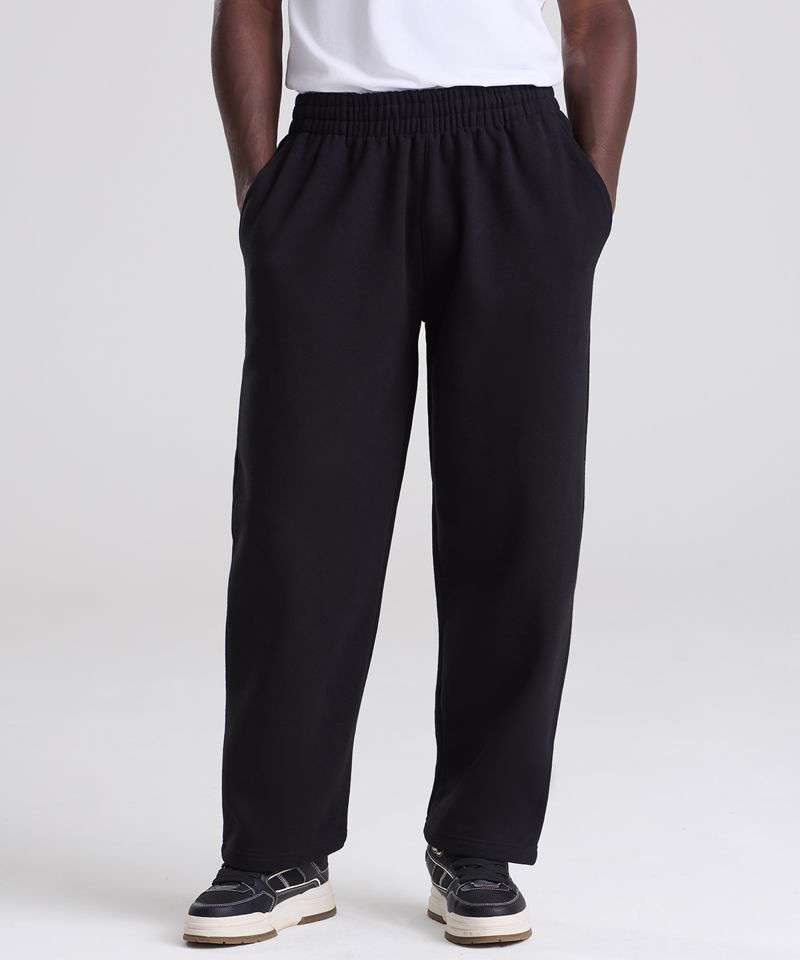 Oversized straight leg. Open hem. Thick elasticated waistband. Inner drawcord. Brushed inner fleece. Side pockets. Back patch pocket. Tear-away label. 100% cotton-faced fabric.