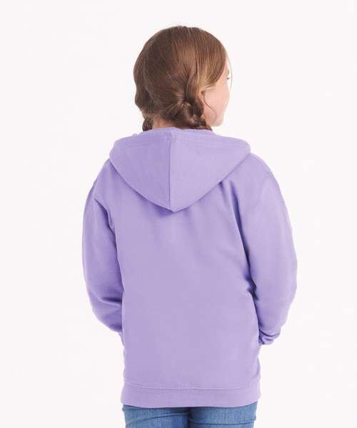 Full zip hoodie with covered main zip with self fabric. Twin needle stitching detail with double fabric hood. Kangaroo pouch pocket and ribbed cuff and hem, no drawcords to comply with EU regulation. Simple tear out label makes it perferct for rebranding. Brushed inner fleece. Soft cottin faced fabric creates ideal printing surface.