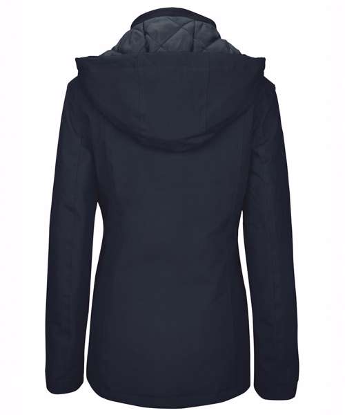 Zip fastening with invisible tab and press studs. 2 zipped outside pockets. 1 inside pocket. Detachable hood. Fleece lined collar. Zip access for decoration. BSCI certified.