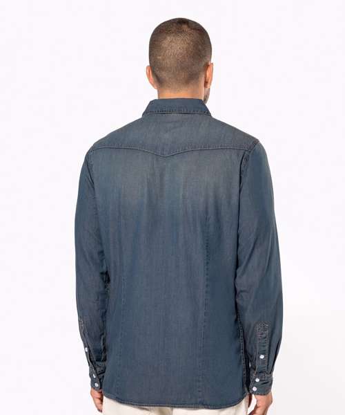 100% cotton. Enzyme-washed shirt. Fitted style. Decorative stud buttons. 2 studded chest pockets with flap. Front and back yokes. Studded cuffs. This product has been specially treated and appears intentionally aged. This manufacturing process results in colour variations between products and makes each piece unique.
