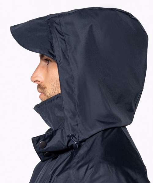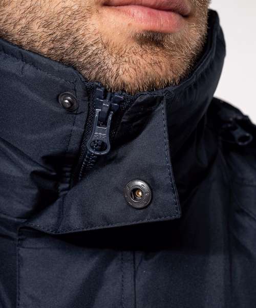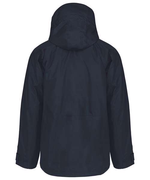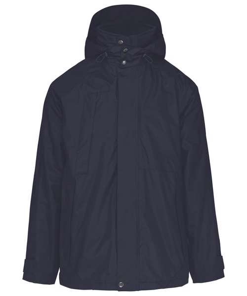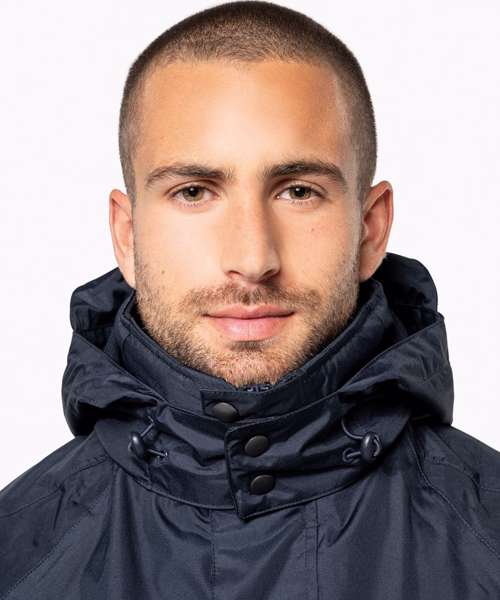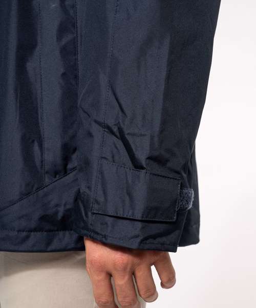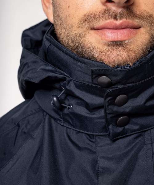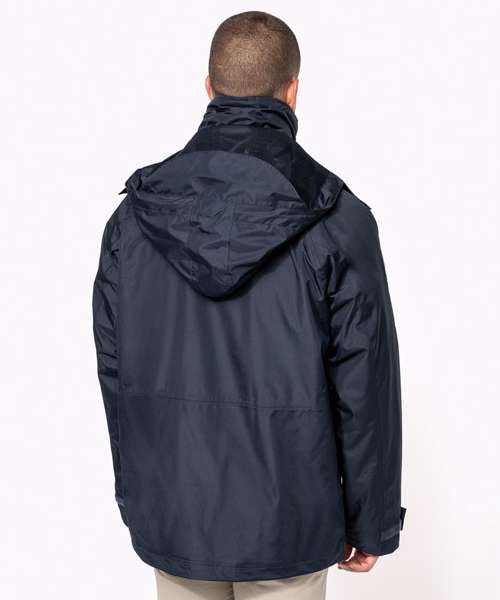 100% Polyester outer with PVC coating. Water-resistant taped seams. 3-in-1 parka: dual-composition padding. Body: 100% polyester mesh. Sleeves: 100% polyester. Zip fastening and press stud placket. Fleece-lined neck. 3-zip pockets at the front with flap. Tear release adjustable cuffs. Press stud removable hood with mesh lining and stoppers. Inner zip access for decoration. Fleece jacket: 100% microfleece polyester. 100% polyester sleeve lining for easy removal. Zip fastening. 2 side pockets. Fleece jacket detachable by zip. BSCI certified.