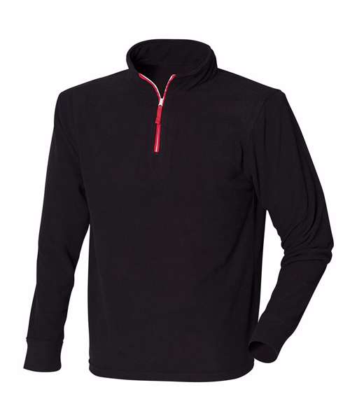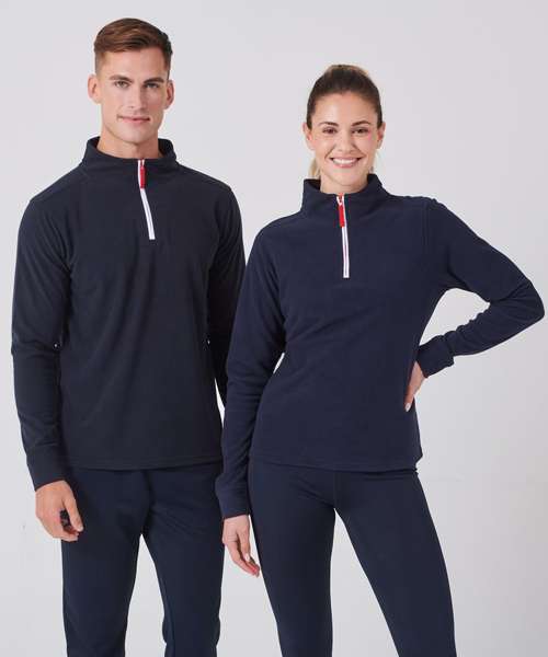 1/4 zip long sleeved polar fleece top with contrast zip and piping detail. Set-in-sleeves. Anti pill.