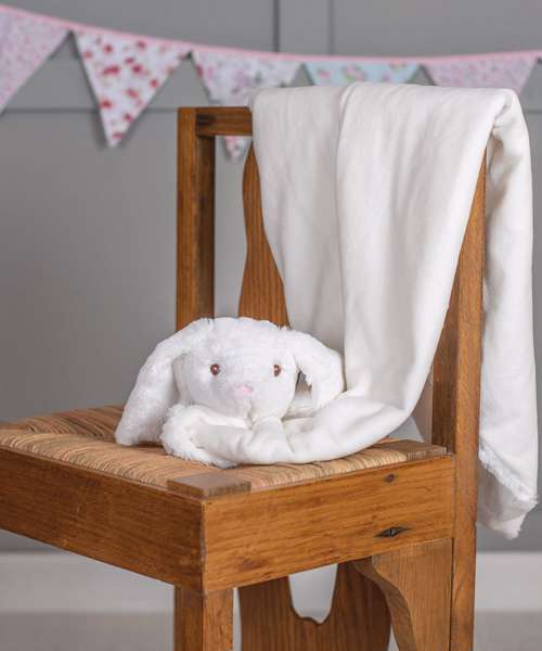 Perfect for gifting, this large plush blanket is designed for lying out on the ground or wrapping up inside. Cute animal heads – elephant or bunny – are playful additions. Double-layered, the blanket can be embroidered or printed for personalisation.