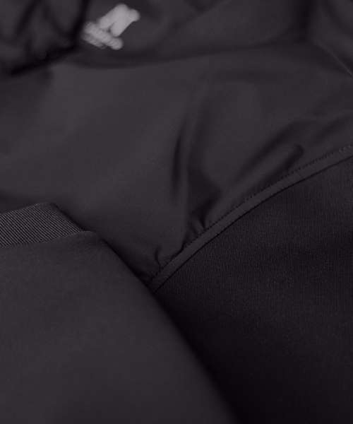 Front shell: 120gsm. Back shell: 340gsm. Lining in body: 36gsm. Rib: 550gsm