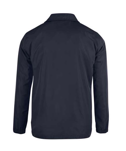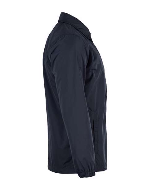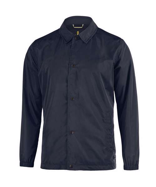 Lightweight jacket. Fashionable coach jacket design. Two side pockets. Water-repellent finish.