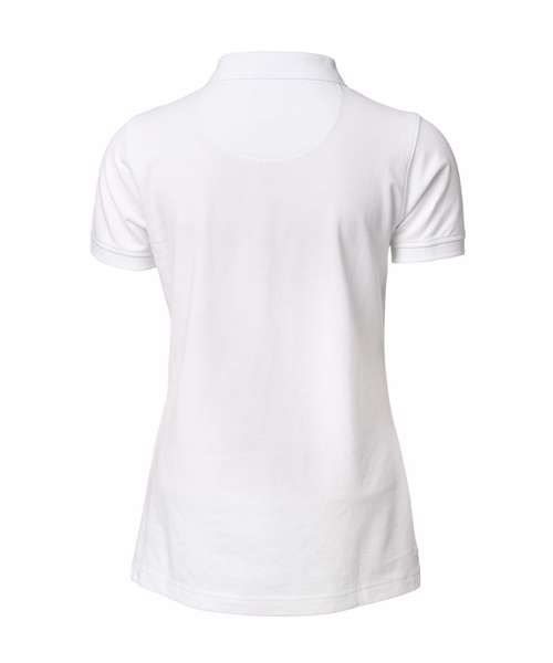 Classic two-thread piqué. Slightly stiff collar. Feminine styled four-button fastening. Combed organic cotton. Organic Content Standard 100 (OCS Certified, CU1038206).