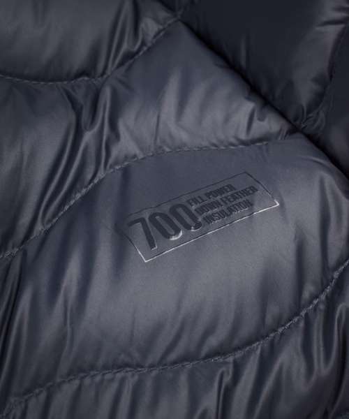 YKK Metalux main zip. Side pockets with hidden zip. 700 fill power. Water-repellent finish (Bionic Finish® ECO).