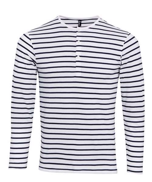 Long sleeve tee that has roll sleeve capabilities with button tab on the inside of the sleeve to secure in place. Round neck style with three a button placket. Twin-needle stitching to the hem and cuff.