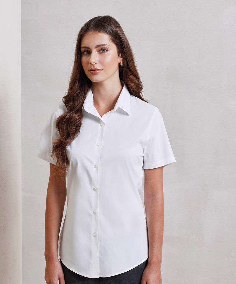 PR346: Women's stretch fit cotton poplin short sleeve blouse