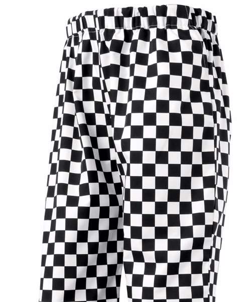 Essential pull-on chef's trouser in available in three popular patterned styles seen to today's modern kitchens. The elasticated waist also has a drawstring for a more gathered, fitted style round the waist and there are two useful swing pockets to the side.