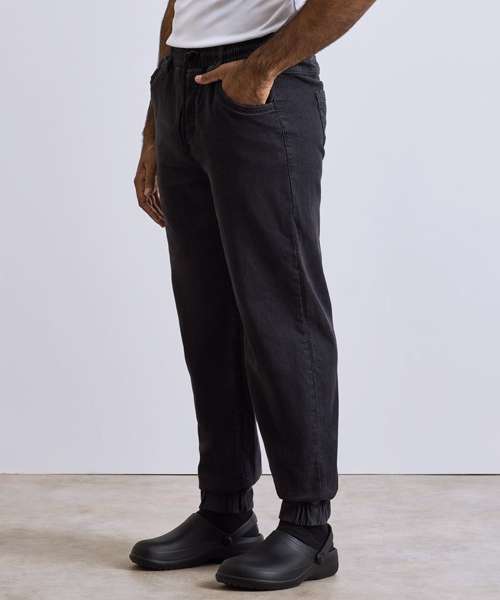 A super comfy pair of chef’s jogging trousers with a classic cuffed ankle. Easy pull-on style with an elasticated waist and draw cord for adjustment. Features a stitched faux fly and swing pockets. To the back there are two handy patch pockets. A cotton-rich knit achieves a very soft and comfortable trouser for chef's teams.