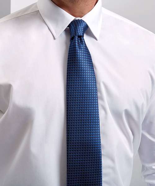 A full length tie with a classic Puppy Tooth pattern using a number of coloured yarns to create a slight contrast effect. A great looking tie for the office with your everyday work shirt or for teamwear uniform to accompany a blazer.