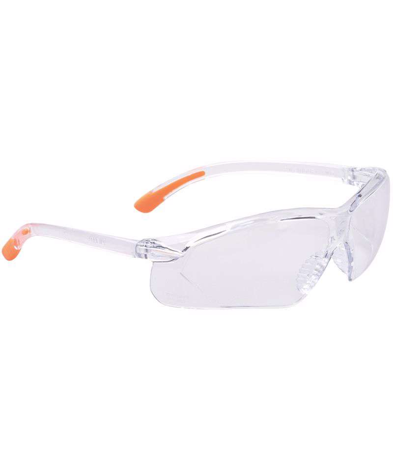 This safety spectacle provides the wide wraparound coverage required for full protection. Stylish rubber tip temples and a mono-lens make it possible to fit these glasses to variety of face types.