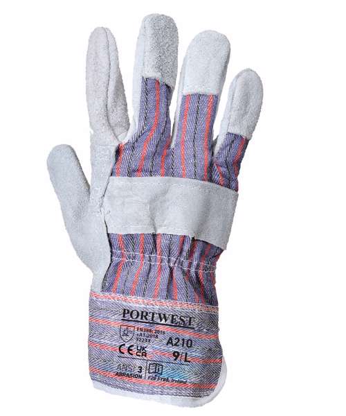 EN388:2016 (3.2.2.3.X) and EN420. Classic glove used in a wide variety of industries including construction, forestry and for general handling. Cow split leather patch palm with vein protection provides good tear resistance while cotton backing increases comfort and ventilation.