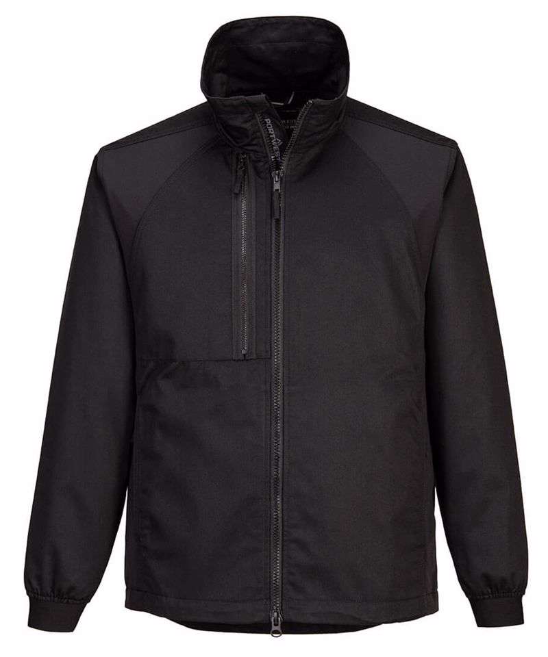 Innovative stretch panelling combined with durable certified recycled polyester and cotton creates a smart but comfortable jacket with ease of movement.