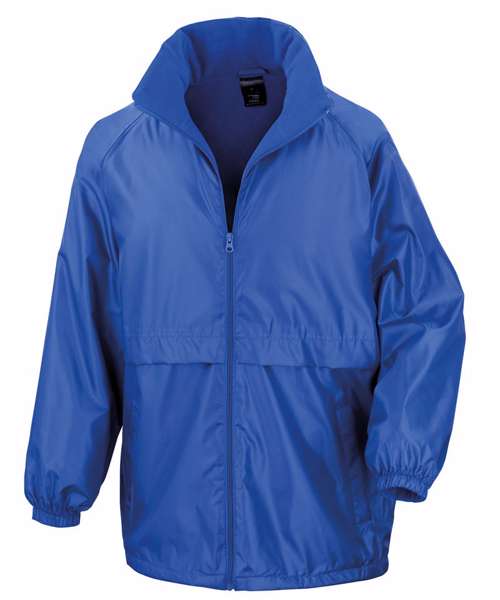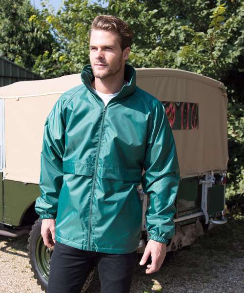 Waterproof (2000mm), lightweight, windproof. Outer: StormDri PU coated polyester. Inner: 100% Polyester, 180gsm microfleece body and sleeve lining
