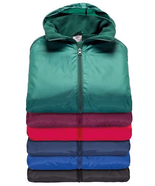 Waterproof 2000mm. Windproof. Waterproof taped seams. Full front zip. Zipped side pockets with cargo retention welts. Fold-away waterproof hood. Reflective tape across the lower back panel. Elasticated cuffs. Microfleece collar facing. Lightweight year-round use. Decorating methods: Embroidery, direct print, transfer print. Decorator's access point: lower back hem.